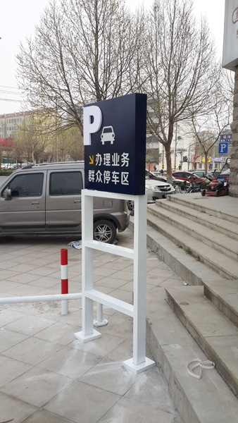 圖為濰坊創(chuàng)視廣告為濰坊市奎文公安分局制作的停車場指示牌,材料冷軋板折彎烤漆車漆+反光膜。